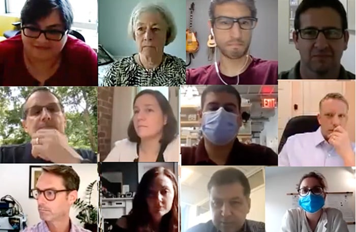 PROGRESS REPORT: NYGC’s Hemali Phatnani, PhD, (top left in Zoom meeting montage) provided an overview of the accomplishments of the Consortium, formed in 2015, at the June 2021 NYGC ALS Consortium Meeting.